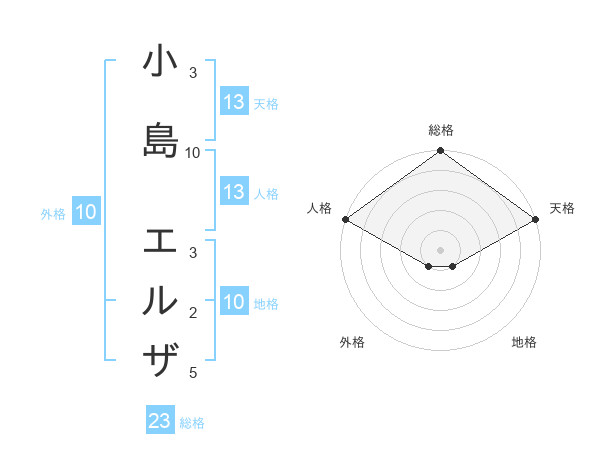 小島 エルザさんの天格は13画の5点