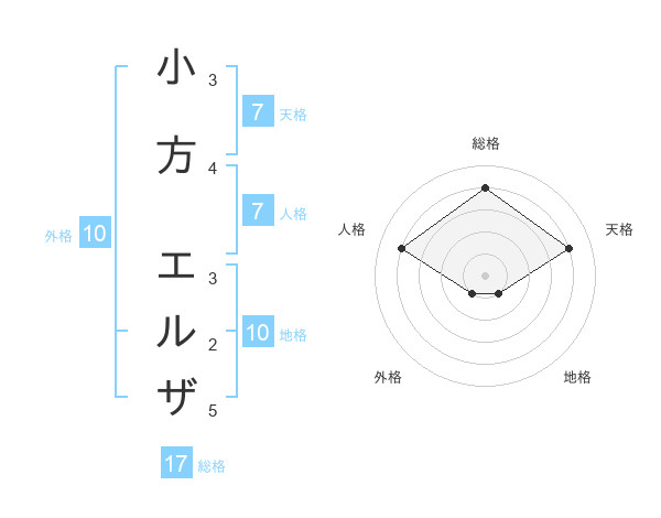 小方 エルザさんの総格は17画の4点
