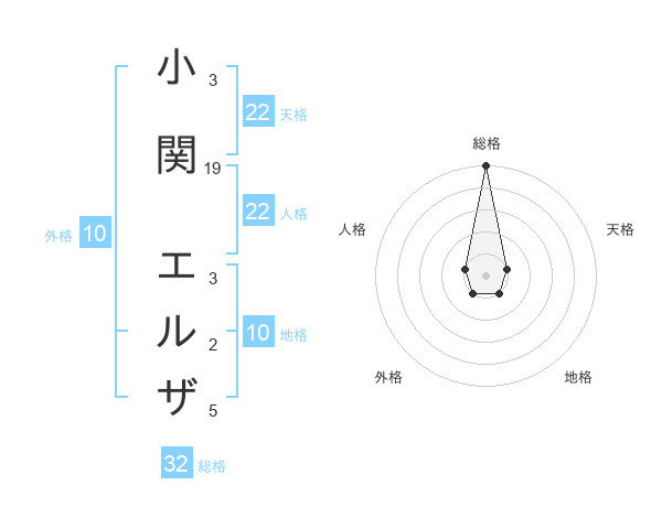 小関 エルザさんの天格は22画の1点!