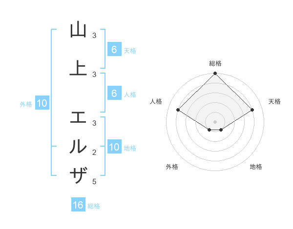 山上 エルザさんの総格は16画の5点!