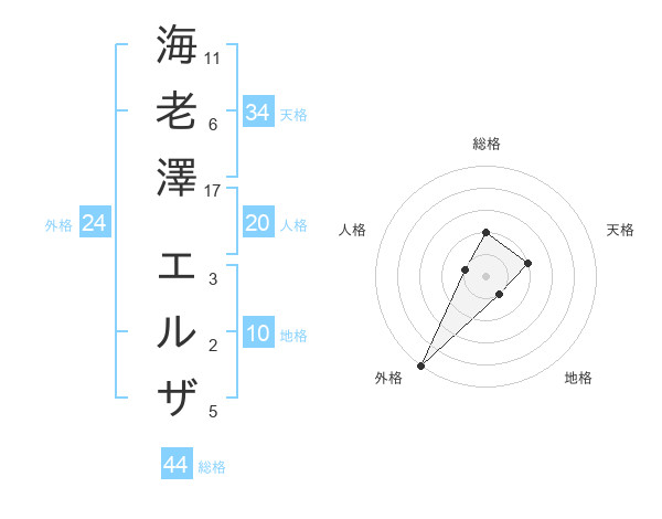 海老澤 エルザさんの総格は44画の2点!