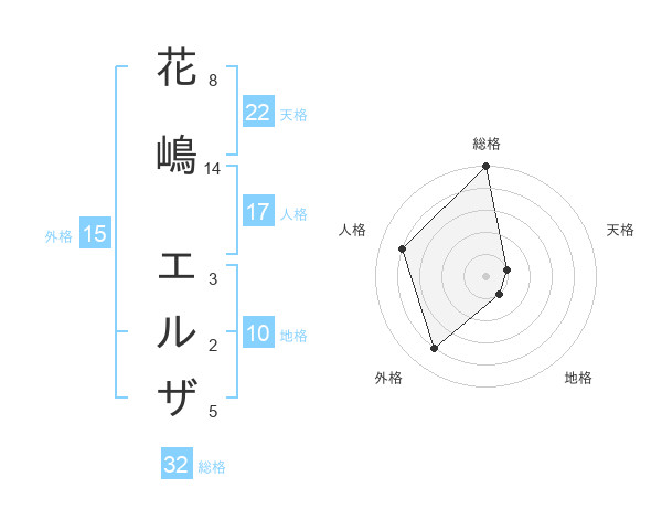 花嶋 エルザさんを姓名の画数から五運を鑑定