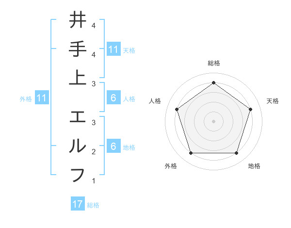 井手上 エルフさんを姓名の画数から五運を鑑定