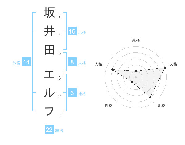 坂井田 エルフさんを姓名の画数から五運を鑑定