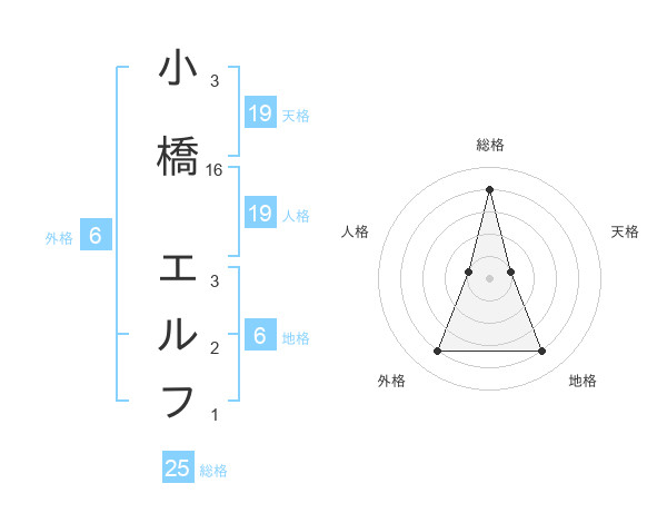 小橋 エルフさんを姓名の画数から五運を鑑定
