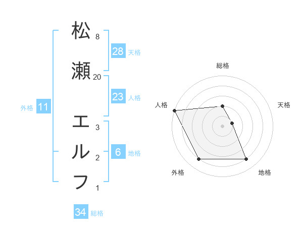 松瀬 エルフさんを姓名の画数から五運を鑑定