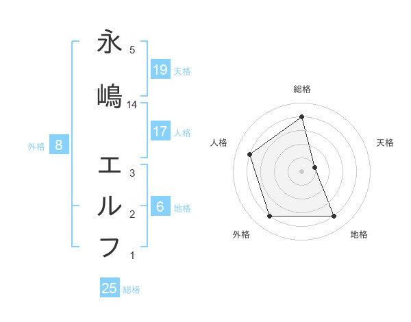 永嶋 エルフさんを姓名の画数から五運を鑑定