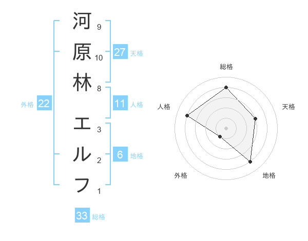 河原林 エルフさんを姓名の画数から五運を鑑定
