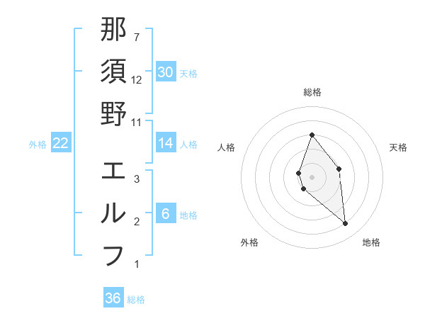 那須野 エルフさんを姓名の画数から五運を鑑定