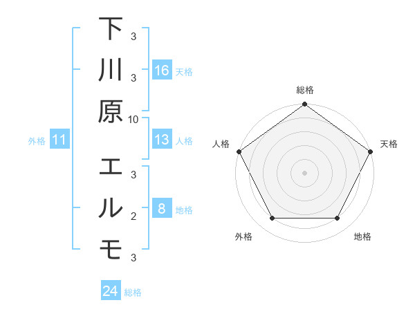 下川原 エルモさんを姓名の画数から五運を鑑定