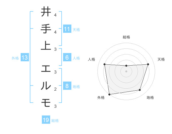 井手上 エルモさんを姓名の画数から五運を鑑定