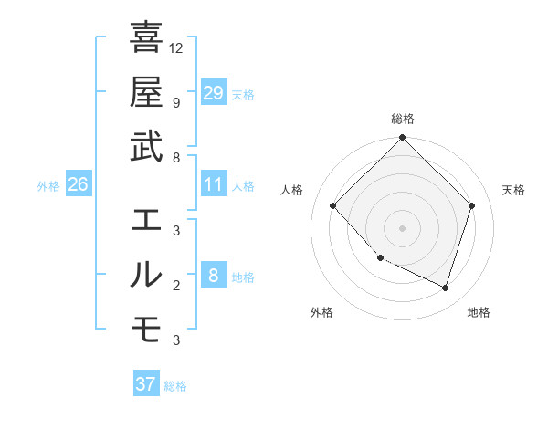 喜屋武 エルモさんを姓名の画数から五運を鑑定