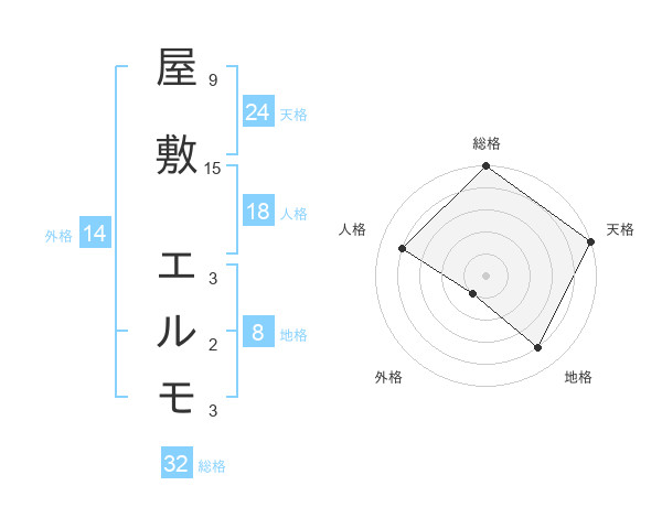 屋敷 エルモさんを姓名の画数から五運を鑑定