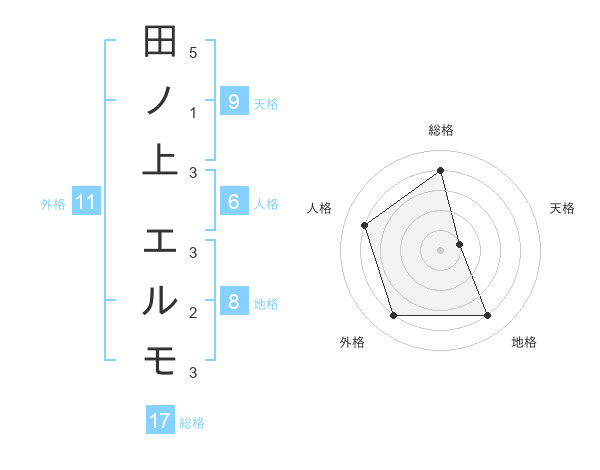 田ノ上 エルモさんを姓名の画数から五運を鑑定