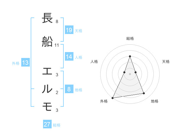 長船 エルモさんの総格は27画の3点!