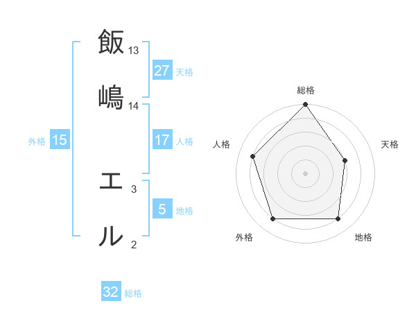 飯嶋 エルさんを姓名の画数から五運を鑑定