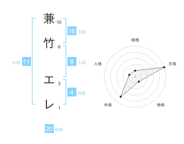 兼竹 エレさんを姓名の画数から五運を鑑定