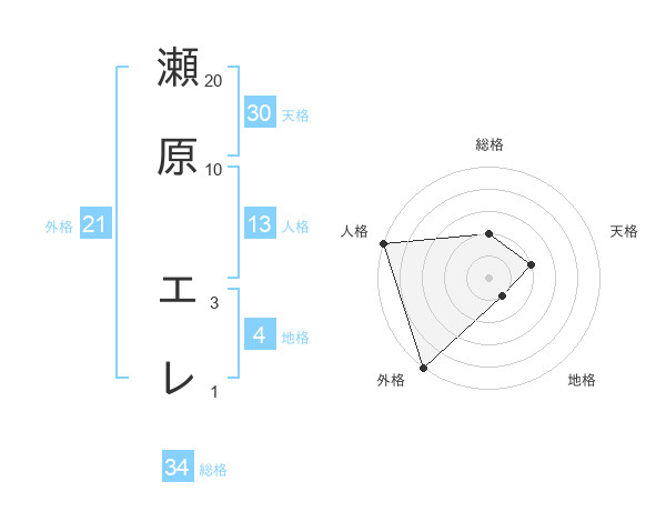 瀬原 エレさんの天格は30画の2点!