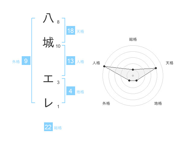 八城 エレさんの天格は18画の4点!
