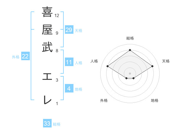 喜屋武 エレさんの総格は33画の4点!