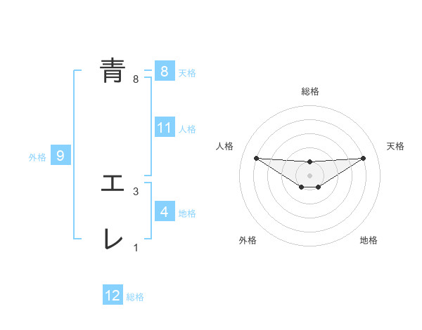青 エレさんの天格は8画の4点!