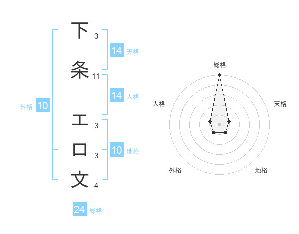 下条 エロ文さんの天格は14画の1点!
