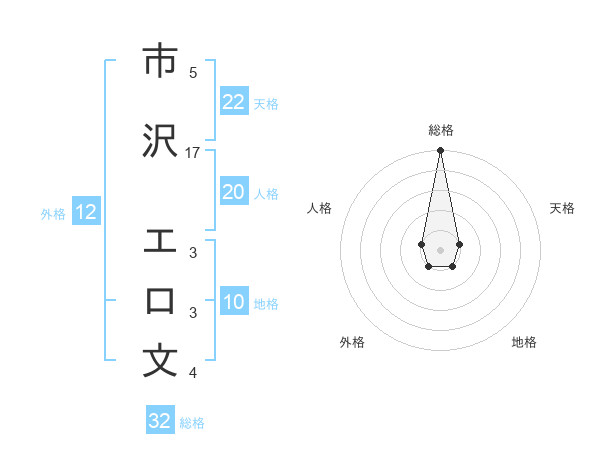 市沢 エロ文さんを姓名の画数から五運を鑑定