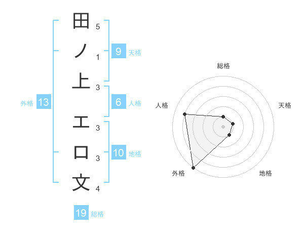 田ノ上 エロ文さんを姓名の画数から五運を鑑定