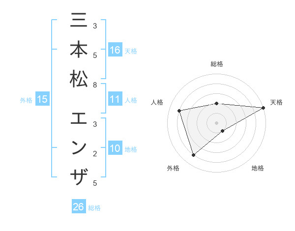 三本松 エンザさんを姓名の画数から五運を鑑定