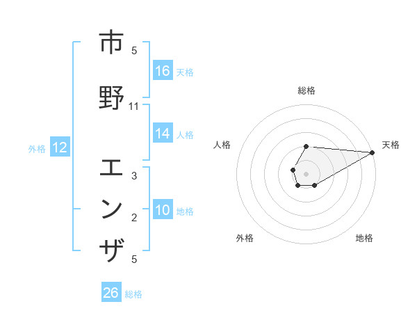 市野 エンザさんの天格は16画の5点!