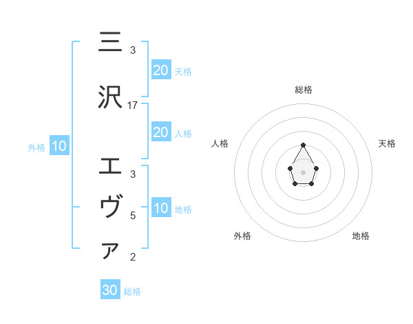 三沢 エヴァさんを姓名の画数から五運を鑑定