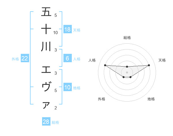 五十川 エヴァさんの天格は18画の4点!
