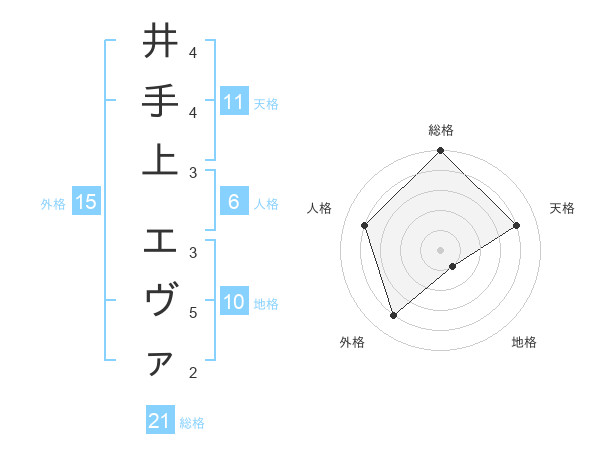 井手上 エヴァさんの総格は21画の5点!