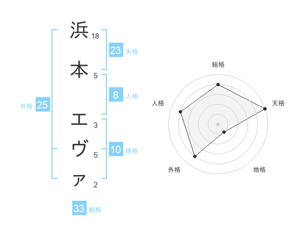 浜本 エヴァさんを姓名の画数から五運を鑑定