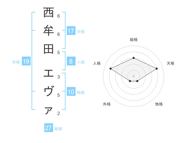 西牟田 エヴァさんの天格は17画の4点!