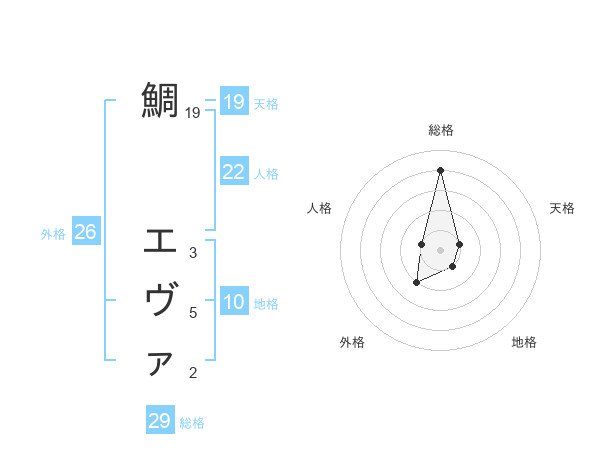鯛 エヴァさんを姓名の画数から五運を鑑定