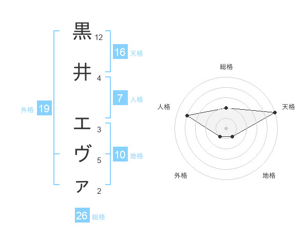 黒井 エヴァさんの外格は19画の1点!