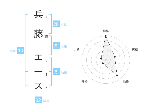 兵藤 エースさんを姓名の画数から五運を鑑定