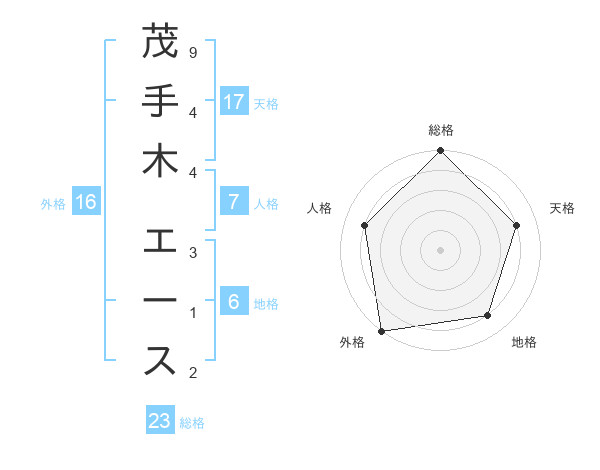 茂手木 エースさんの総格は23画の5点!