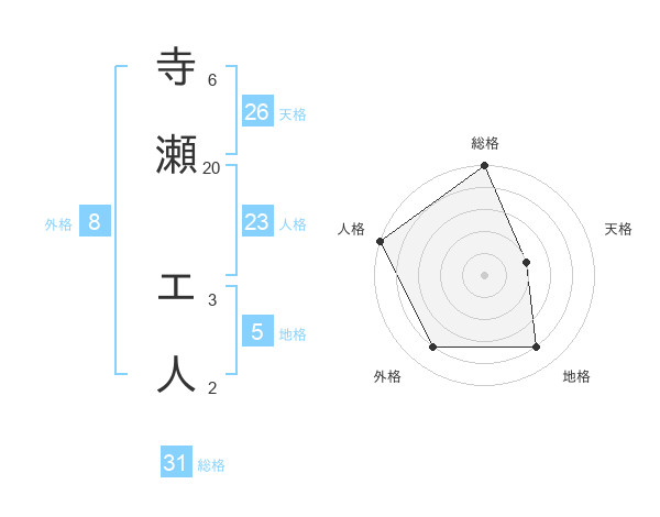 寺瀬 エ人さんを姓名の画数から五運を鑑定