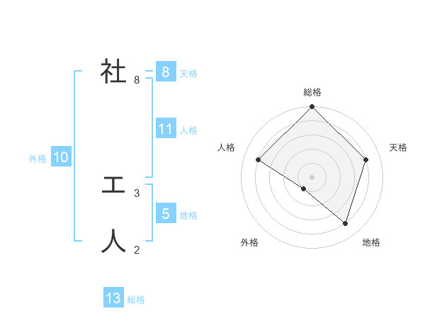 社 エ人さんの総格は13画の5点!