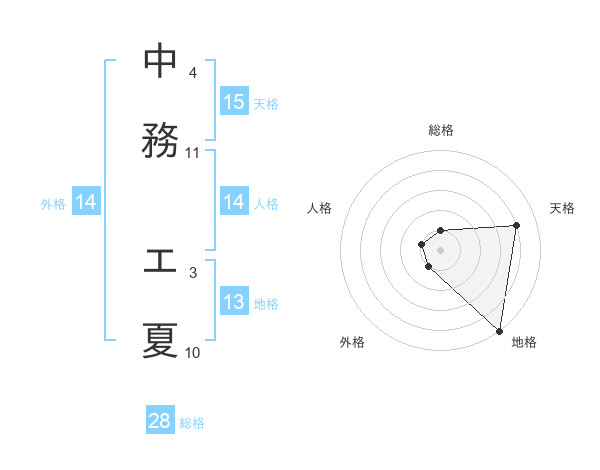 中務 エ夏さんを姓名の画数から五運を鑑定