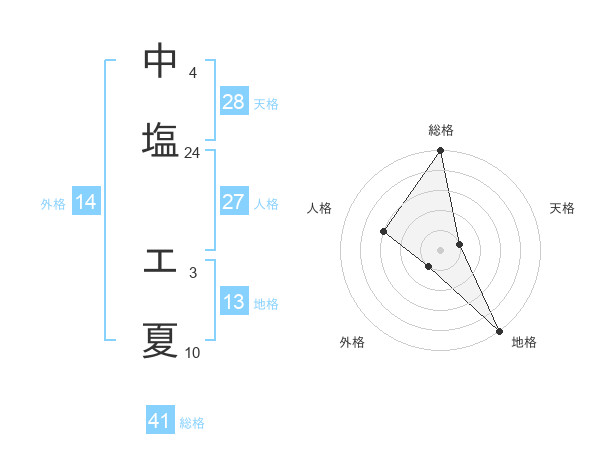 中塩 エ夏さんの総格は41画の5点!