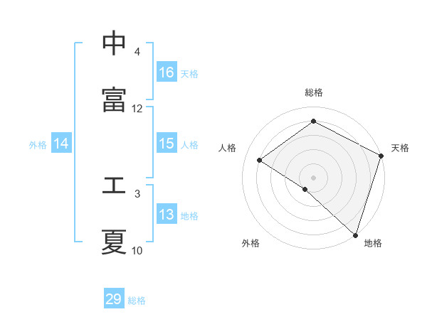 中富 エ夏さんの天格は16画の5点!