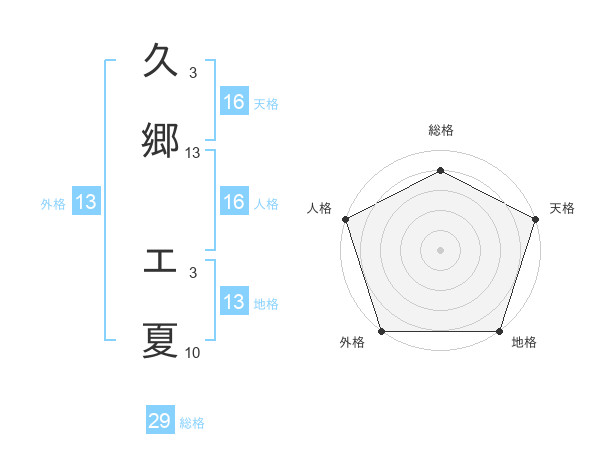 久郷 エ夏さんの外格は13画の5点!