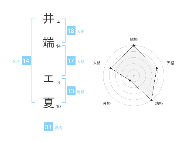 井端 エ夏さんを姓名の画数から五運を鑑定