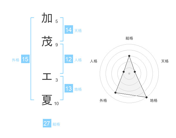 加茂 エ夏さんを姓名の画数から五運を鑑定