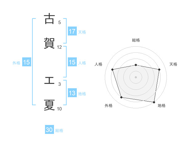 古賀 エ夏さんの天格は17画の4点!