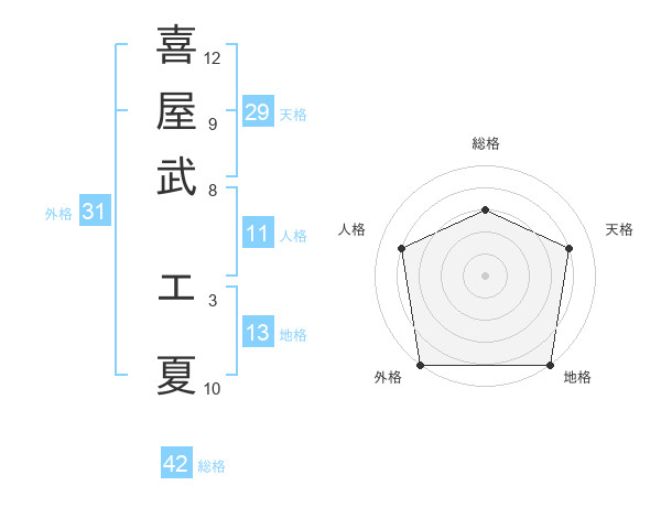 喜屋武 エ夏さんを姓名の画数から五運を鑑定
