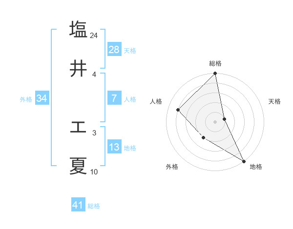 塩井 エ夏さんを姓名の画数から五運を鑑定